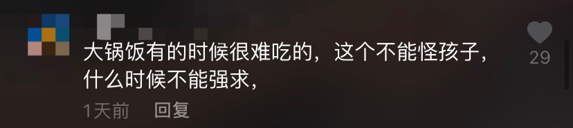 有网友建议学校食堂推出小份饭菜。吴爱英也表示,学校一直是学生自己拿餐盘去窗口打菜,分量是自己控制的。今年因为疫情才会固定两荤两素一汤打包带走。