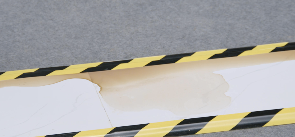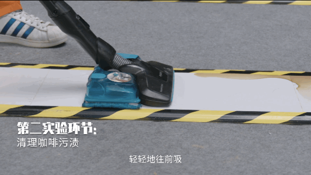 家庭或者工作环境中,常常会出现喝的饮料、奶茶、咖啡打翻的情况。这种污渍如果不及时清理,等它变干之后,就会牢牢地粘在地板上,非常难清理。我们用一杯咖啡模拟这种情况,将咖啡倒在地板上,然后用烘干机把它烘干,此时,咖啡渍已经完全粘在地板上了。