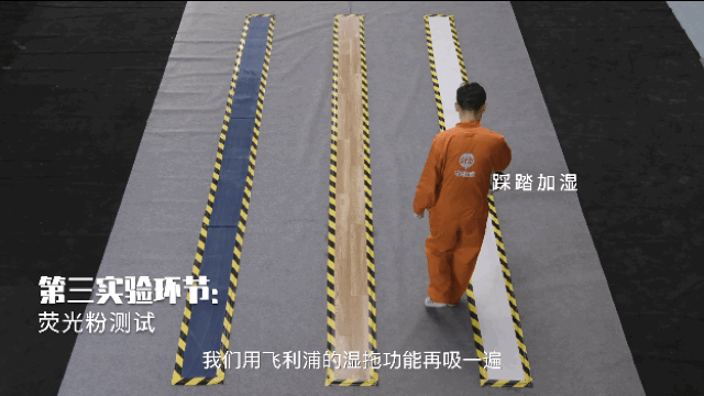 家里面搞卫生,一般来说吸尘器吸一遍就不会用拖把再拖一遍了,这样看得见的污渍是被清除了,看不见的污渍就可能被忽略了。我们用荧光粉来模拟肉眼看不见的污渍,把荧光粉洒在地上,再用吸尘器将地面清理干净,肉眼上看已经很干净了。但是,用紫外线灯照就能看到,地板上还是有很多荧光粉残留,说明这些污渍确实是存在的。然后用飞利浦的湿拖功能再吸一遍,吸完之后用紫外线灯重新再照一下,可以看地上已经没有之前的绿色光斑了,说明飞利浦的湿拖功能可以很好的清理那些肉眼看不见的垃圾。
