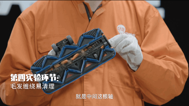 相比于吸毛发,吸尘器刷头里面的毛发清理,才是更难的。飞利浦W7无绳吸拖一体机刷头中间有一根轴,可以很轻松的就把它抽出来,吸进去的毛发都粘在这跟轴上面,拿下来之后就很好清理了。