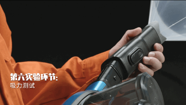 为了测试它的吸力到底有多大,我们准备了一个10磅重的保龄球,用一个特制的吸嘴套在吸尘器上,然后打开吸尘器,强大的吸力竟然可以直接把保龄球吸起来,官方数据可达99.9%吸尘率。