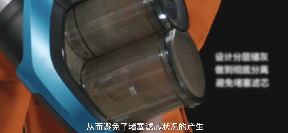一台吸尘器好不好还有一个重要的指标,就是它会不会二次污染。吸尘器的工作原理跟人的呼吸是一样的,一边吸气一边就需要排出脏空气,如果它的尘离系统做得不够好,就会一边吸尘一边把灰尘、尘螨、各种病菌喷在你的脸上。我们点燃烟饼,来模拟极细颗粒的灰尘。用吸尘器直接吸烟,可以看到出风口并没有漏烟。这是因为飞利浦W7无绳吸拖一体机,它的尘盒采用特殊设计,分层储灰,做到了彻底分离。开机状态下,尘盒中的灰尘一动不动,从而避免了堵塞滤芯情况的发生。衡量一台吸尘器最最关键的指标,就是它的吸力大小。飞利浦W7无绳吸拖一体机配备了5个刷头,其中一个号称可以360度环绕无死角吸尘。
