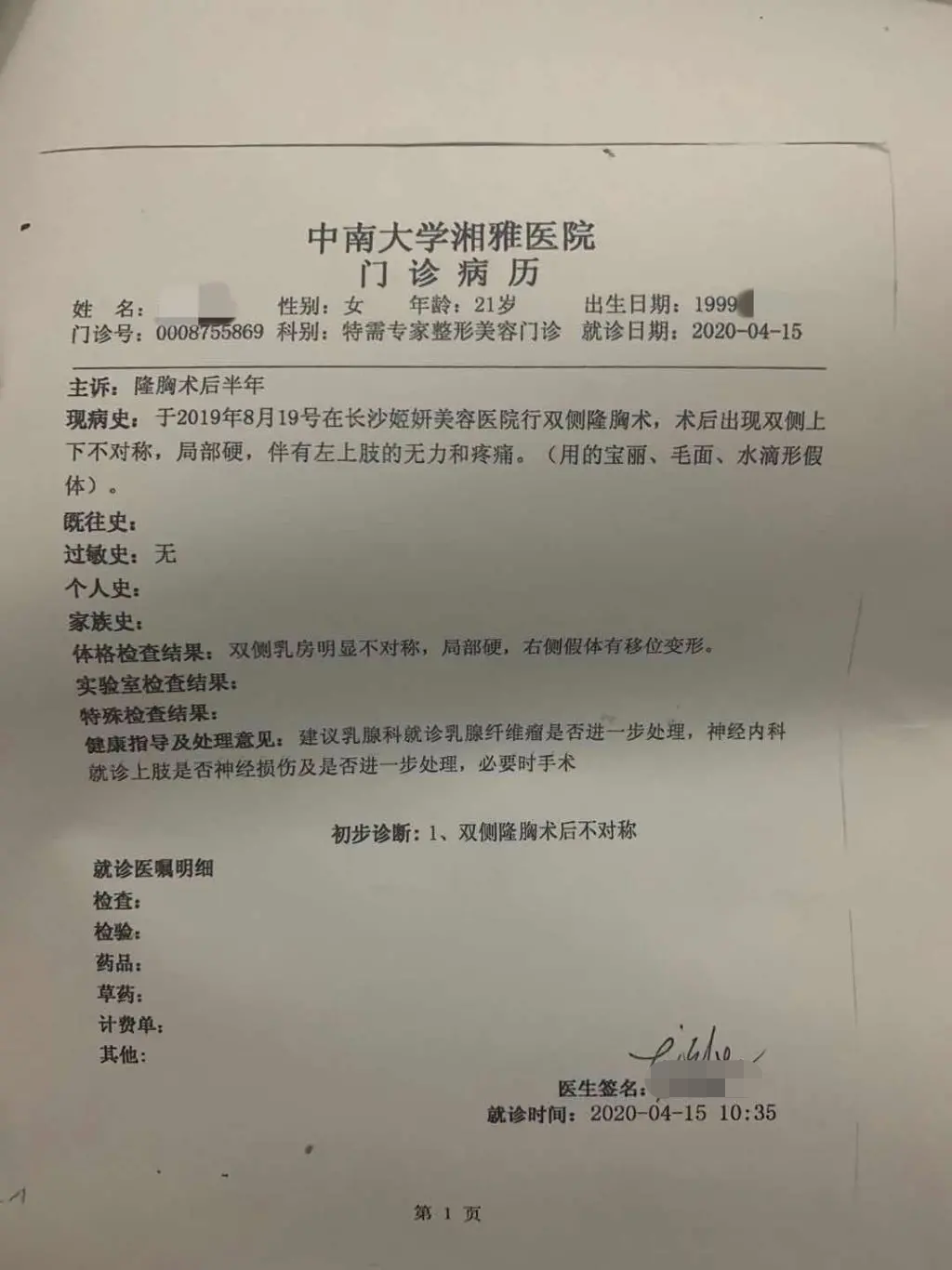 去年8月,在长沙某医美机构的做隆胸手术,结果却失败了——