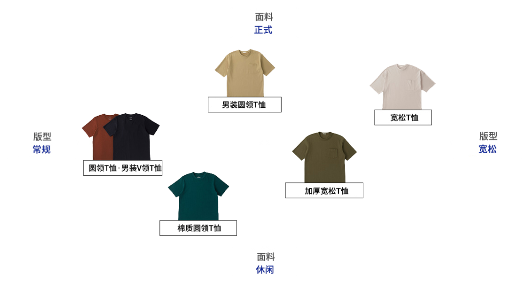 例如男性特集里面就有一个专题专门教你如何在他们种类繁多的 T-Shirt 里面找到一款合适你自己的。而且里面的分类介绍也非常走心。根据剪裁和面料的不同把版型分为了 LOOSE、BIG、RELAX 以及 REGULAR 4 种版型。