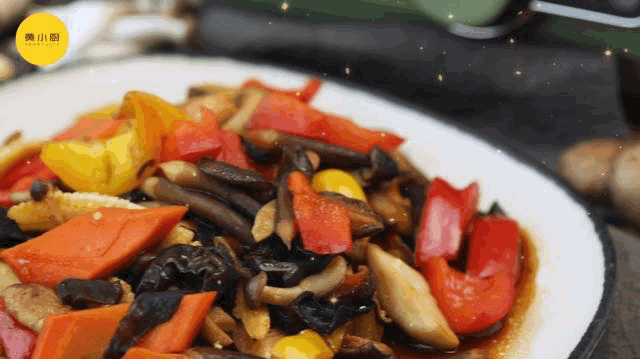 起锅,倒油。依次加入木耳,白玉菇、蟹味菇、鸡纵菌、香菇进行翻炒,然后将剩余食材玉米笋,胡萝卜、红黄彩椒放入继续翻炒。