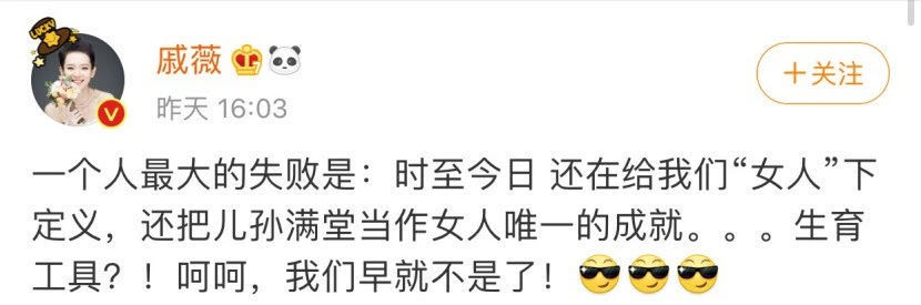 “时至今日,还在给女人下定义,认为女人的成功在于生儿育女儿孙满堂才是一个人最大的失败。”
