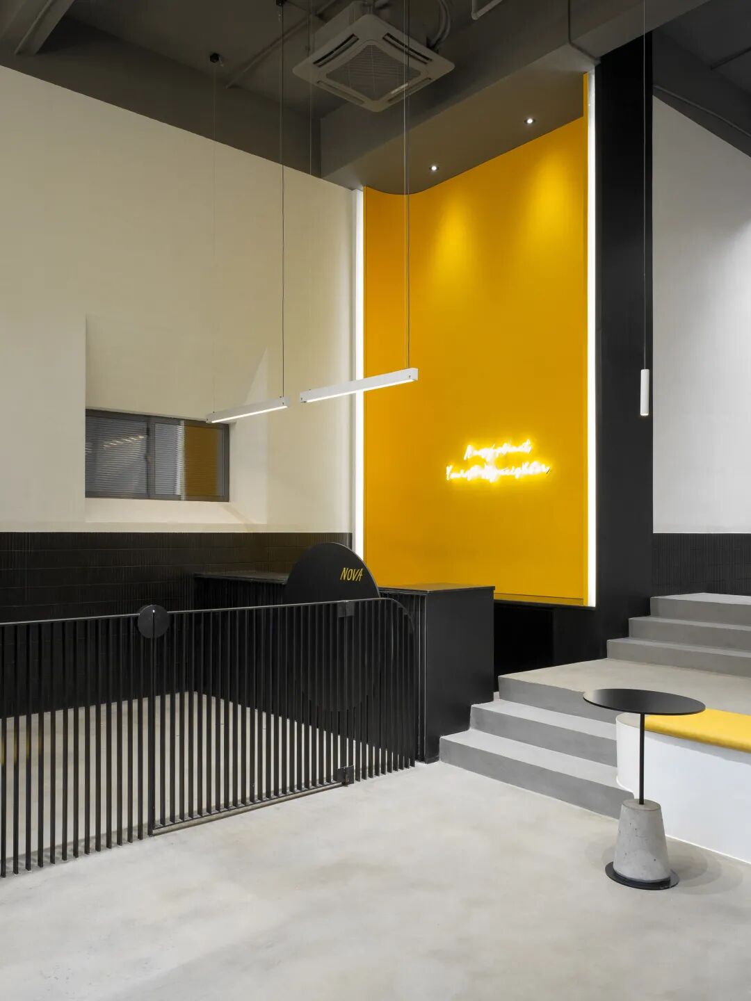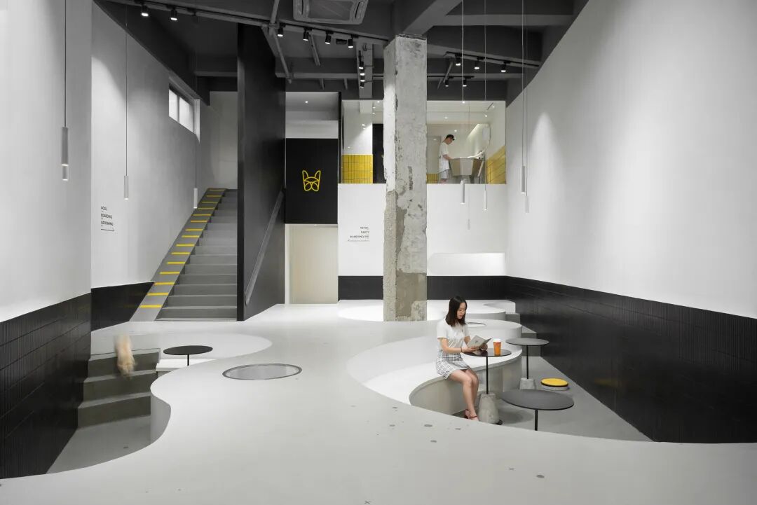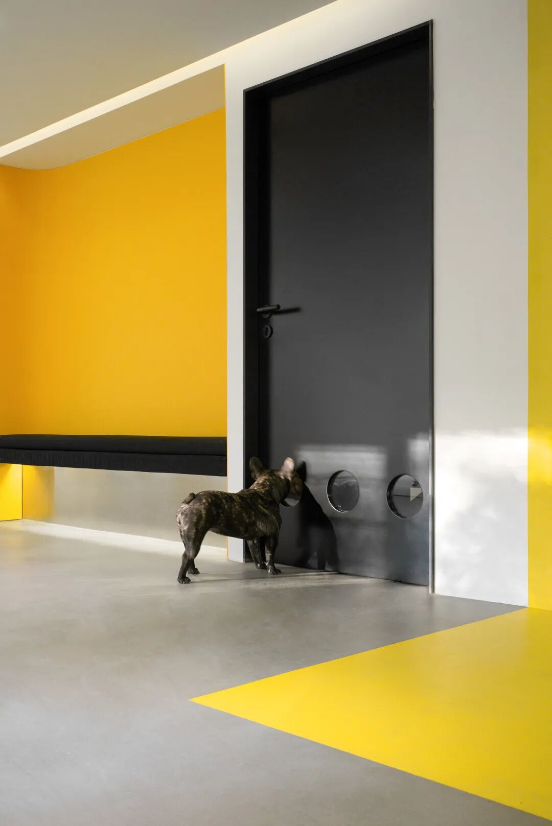 整个空间内部都以黄色、黑色为主,设计师说:“黄色、黑色和灰色是狗在日常生活中可以看到的主要颜色。并且黄色更能够给该空间带来年轻、充满活力的感觉。”