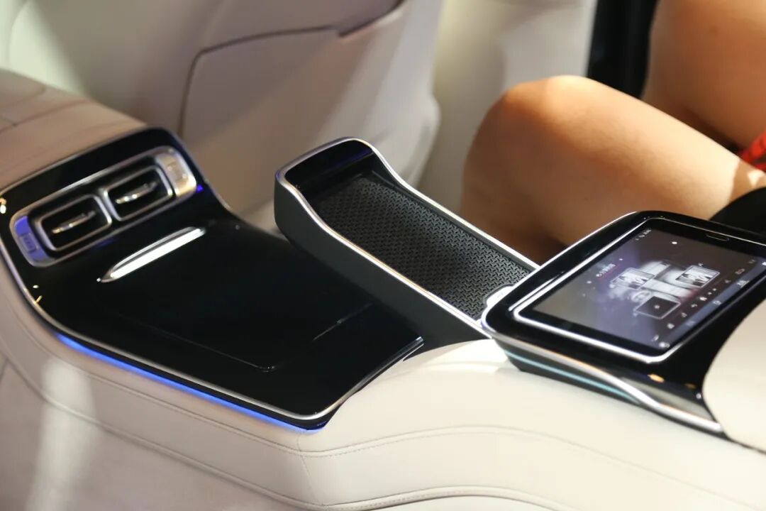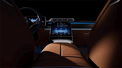 新一代S级已经转向了用数字化体现豪华。这块中控屏幕暗含玄机,12.8英寸,OLED材质,1888×1728分辨率,200dpi清晰度,流畅度高,圆角设计,金属镶边,屏占比大,UI界面成熟。也正是大屏以及仪表盘的存在,全新S级比老款减少了整整27个机械按键,更加简约科幻。内置的第二代MBUX系统甚至能在一些基础应用上省去“你好,奔驰”的唤醒语。