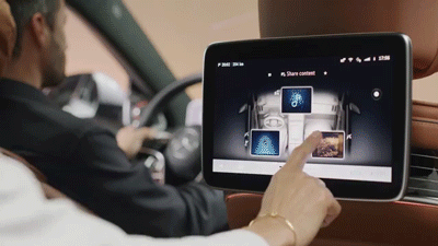 多座互联娱乐系统:全新S级车内共有5块屏幕,车内乘员可以通过多座互联娱乐系统(座椅前方的屏幕)进行内容分享,不管是导航、视频还是音频,只需触控拖拽到屏幕画面中的相应座位处,即可轻松完成隔空分享给其他乘员。
