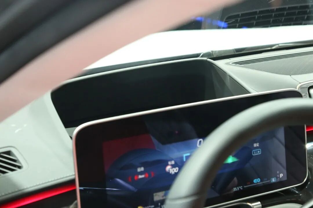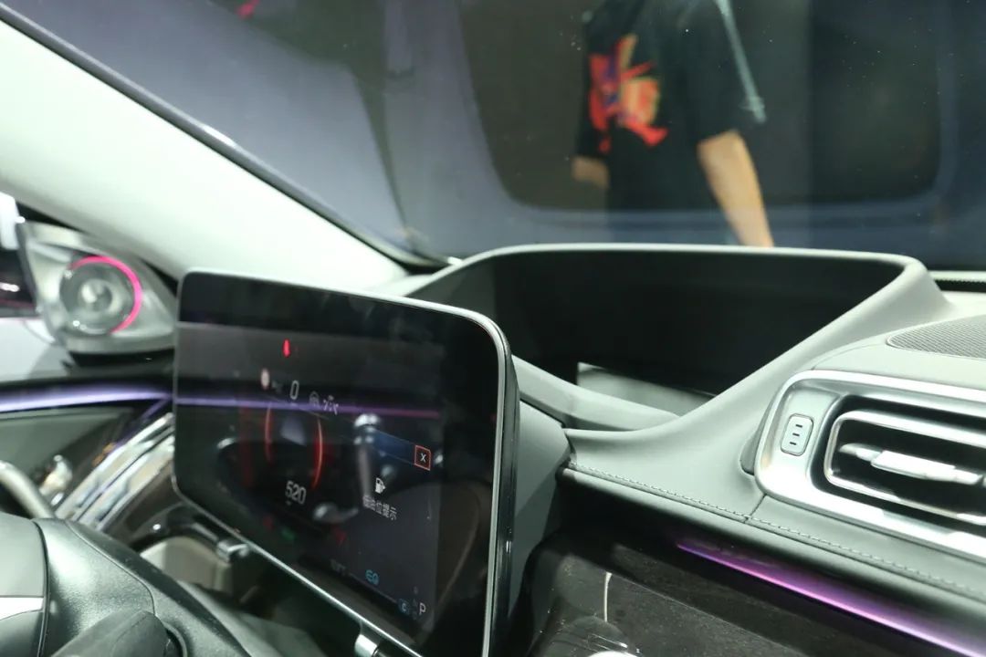 不过,由于要满足科技先行,车内各大元素的搭配并不算协调,立起来的仪表盘和AR-HUD区域巨大的模块空间看起来有些拼凑感,中控屏镶嵌得也不算巧妙。整体是工程师思维导向,设计师失语,功能和科技(下面会详细提到)是完备了,但是美感略有缺失。