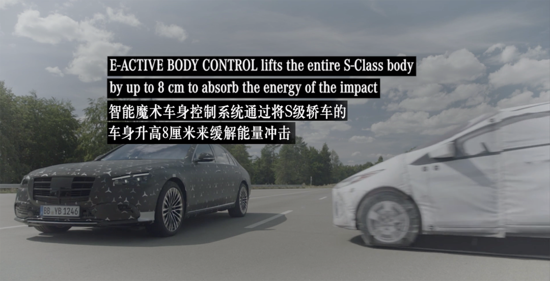 当全新S级面临侧面碰撞危险时,预防性安全系统将立即启动,它会借助侧向雷达传感器,系统的侧碰保护功能可在第一时间识别并跟踪潜在的侧碰风险,智能魔术车身控制系统则与之配合,在几十分之一秒内快速把车身升高8厘米,使撞击转移至相对更为坚硬的车身门槛,以此减轻座舱的变形和对驾乘者的强大冲击。