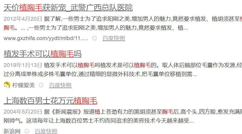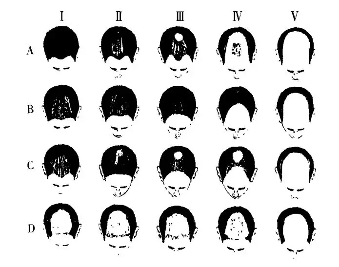 丹麦王储弗雷德里克就通过自己脱得光滑溜溜的胸膛(可能还有显赫的地位),俘获了王储妃玛丽的芳心。但胸毛的审美也会变化,一些女性又开始觉得多毛的男人更性感。毕竟一个胸部比自己大腿还光滑的男人会令欧美女性压力山大。随着国外胸毛时尚的再度兴起,与国际接轨的国内时尚男士也蠢蠢欲动,但受基因限制,大部分亚洲男性没有“良好的胸毛基础”。为满足部分亚洲男对胸毛的憧憬,“植胸毛”这个手术项目应运而生。也不知那些植胸毛的兄弟们现在怎么样了,但壹读君个人认为有两点不妥之处。首先,“人毛出在人身上”,植毛医生通常会选取毛发量多、不易脱落且成活率高的毛发区域,这个区域通常在人的后枕部。后枕部指人类平躺时后脑勺与枕头接触的部位,在各种类型的脱发方式中,后枕部总能避开脱发厄运,因此也成了医生的首选。Ⅰ到Ⅴ是从初期到晚期不同阶段不同人种脱发“形势”;A:北欧人的脱发类型,中间一束发持续存在;B:犹太人的脱发类型,前额发际线进行性变秃而无头顶脱发;C:拉丁人和地中海人的脱发类型;D:女性雄激素性脱发。但后枕部的毛发属于不可再生资源,在发际线普遍失守的大环境下,“胸毛”可能夺走大家挽救秃顶的机会。其次,头发和胸毛不是同一种毛!头发属于长毛,和胡须一样可以越张越长;胸毛属于短毛、卷毛,生长长度有限。长毛和短毛结构也不一样,把头发移植到胸部看起来真的不奇怪吗......这种胸毛还需要经常修剪,否则就会出现胸毛及腰的效果。胸毛不一定增加男性的性感度,却有增加患寄生虫病的风险。就像动物皮毛中的虱子、跳蚤,人类的毛发中也容易藏匿寄生虫。在这些毛发中的寄生虫里,阴虱是其中的佼佼者。阴虱长约1至3毫米,有6足,身体扁平,形似皮屑,常寄生于人体毛发中。