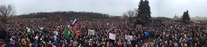 纳瓦利内崛起于2011年底全俄大抗议期间,在绵延近半年的抗议运动中成为新的领袖人物,自那时起,试图「解决」掉他的尝试就未曾中止过。但自2013年首次调查和逮捕造成支持者抗议示威以后,克里姆林宫大体划出了在应对纳瓦利内问题上的那条红线:不管如何攻击、抹黑、起诉、逮捕和拘留,总体上不会危及他个人。2013、2014年两次庭审,法官均宣布纳瓦利内罪名成立,但他本人只被判处缓刑,反倒是他原本并不参与政治的亲弟弟奥列格·纳瓦利内遭牵连入狱。2021年2月,为了从法律上杜绝他参选总统,莫斯科地方法院甚至不惜将2014年判决书一字不差地重新宣布了一遍,但谈到具体处置,始终是几乎没有实际影响的所谓「缓刑」。这种处理办法背后意味深长:对于此前几年中的克里姆林宫而言,纳瓦利内对于群众情绪以及游行示威的号召力极为危险,特别是2015年在另一个反对派领袖涅姆佐夫遇刺以后,莫斯科一度爆发过数万人抗议游行,为了杜绝类似事件造成局势失控的可能性,克里姆林宫对绝大多数纳瓦利内的活动选择了视而不见。纳瓦利内的又一次高光期在2021年到来,那一年3月,以指控梅德韦杰夫贪腐为契机,他出人意料地发动了又一场席卷全俄的大抗议,也因此证明了自己的实力所在。·2021年3月27日的圣彼得堡抗议现场 / 网络