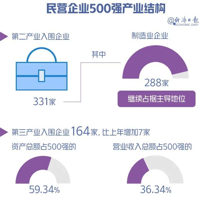 这次第三产业入围企业164家,比上年增加7家,资产总额和营业收入总额分别占500强的59.34%和36.34%,资产总额占比与上年基本持平。