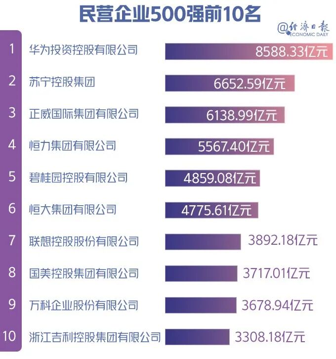 中国民企500强榜单是全国工商联发布的,是在上规模民营企业调研的基础上,按照营业收入降序排列产生的。