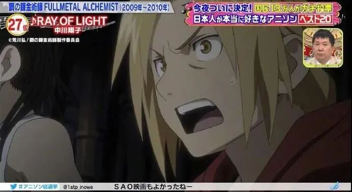 《钢之炼金术师》的RAY OF LIGHT列第27位;
