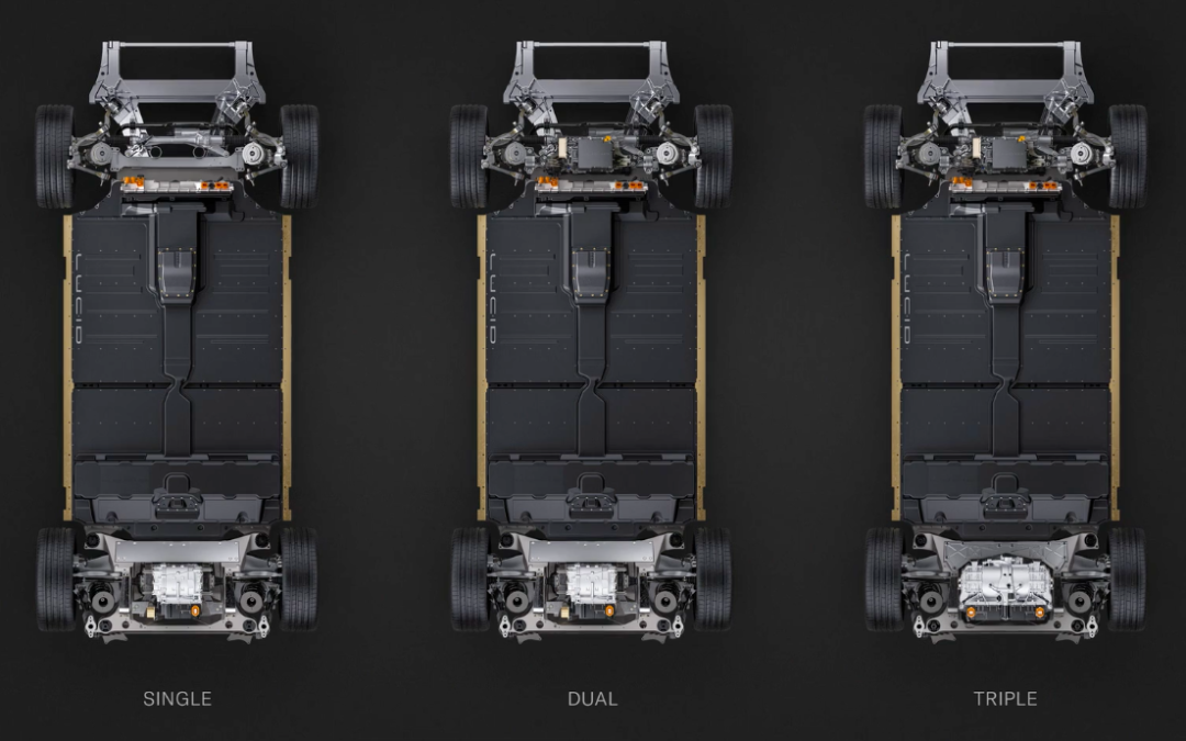 而在发布会上,Lucid 展示了这样一张图,关于 Air 的电机分配,看来,后续可操作空间还很大。