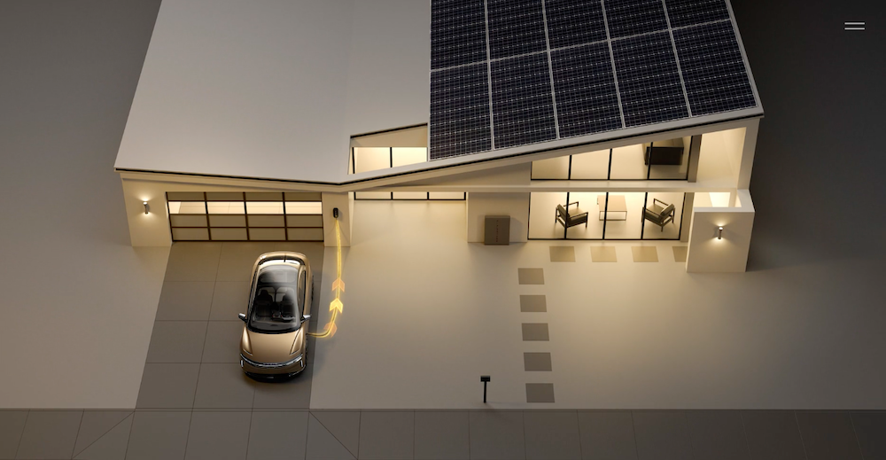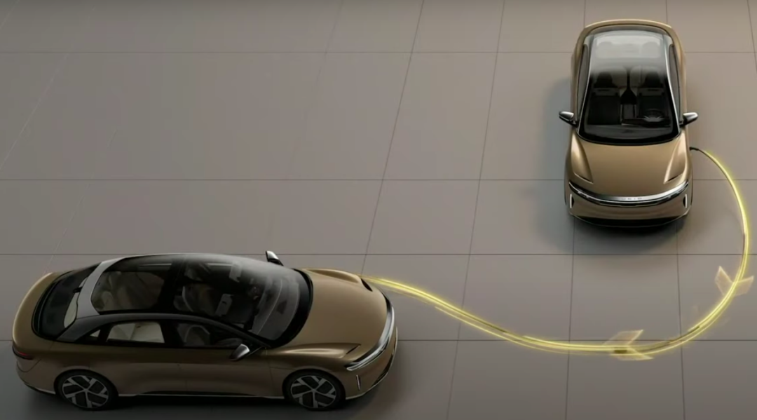 有意思的是,Lucid Air 还可以实现反向充电:反向给另一辆 Lucid Air 充电(这一点国内的比亚迪已经做到且量产了)、反向给家庭供电。