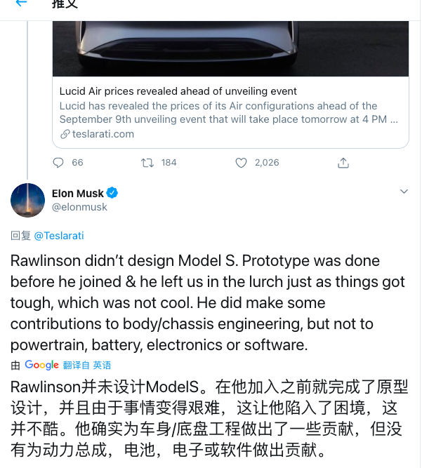 甚至,Lucid CEO & CTO Peter Rawlinson 说的一些言论引来特斯拉掌门人马斯克的关注。不管这个事件是不是 Lucid 「碰瓷」特斯拉,都从侧面说明:Lucid 让马斯克重视了。