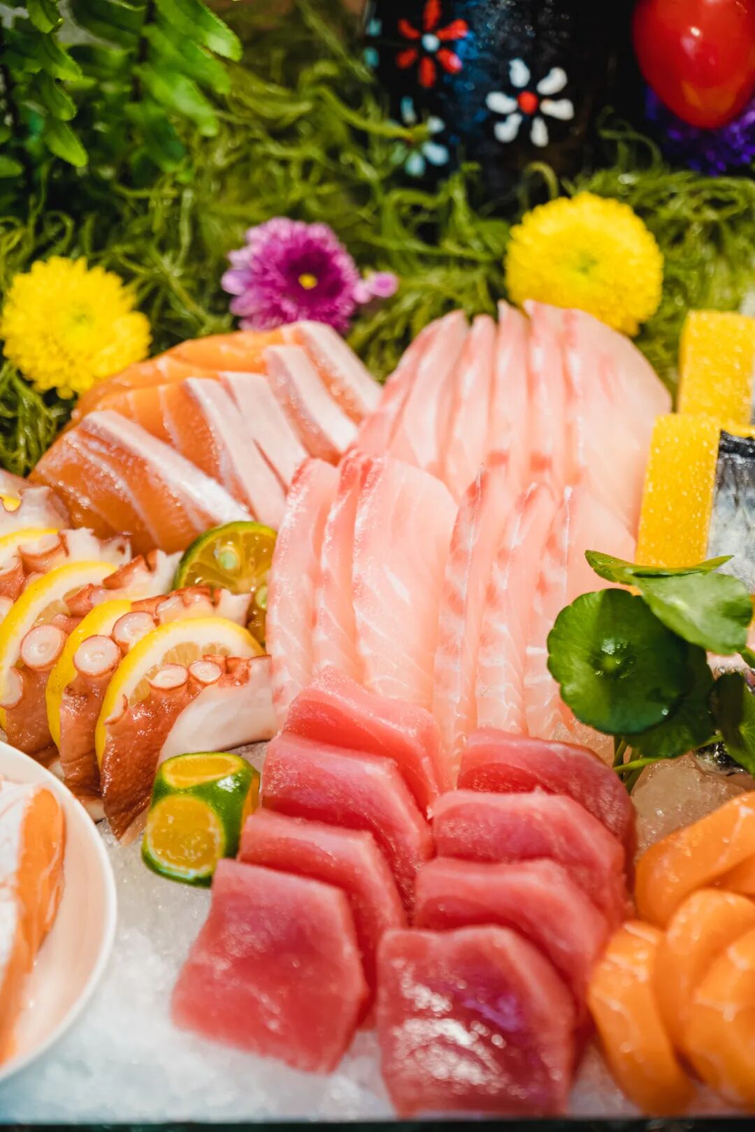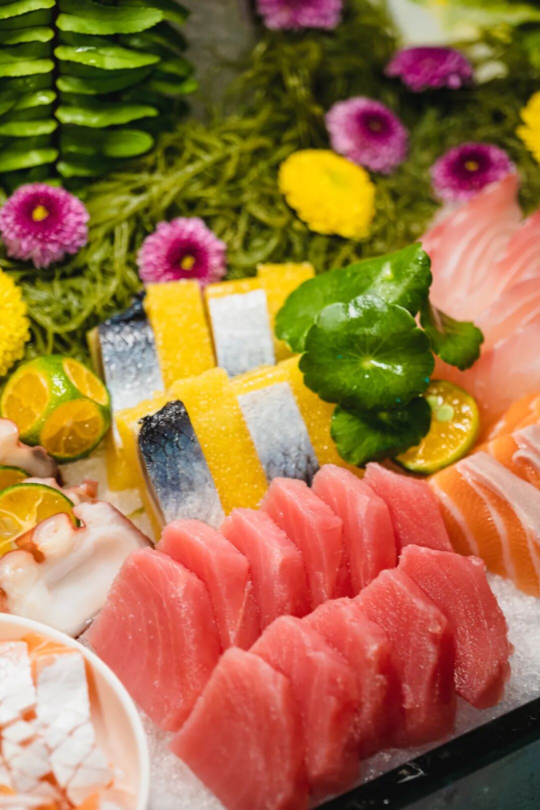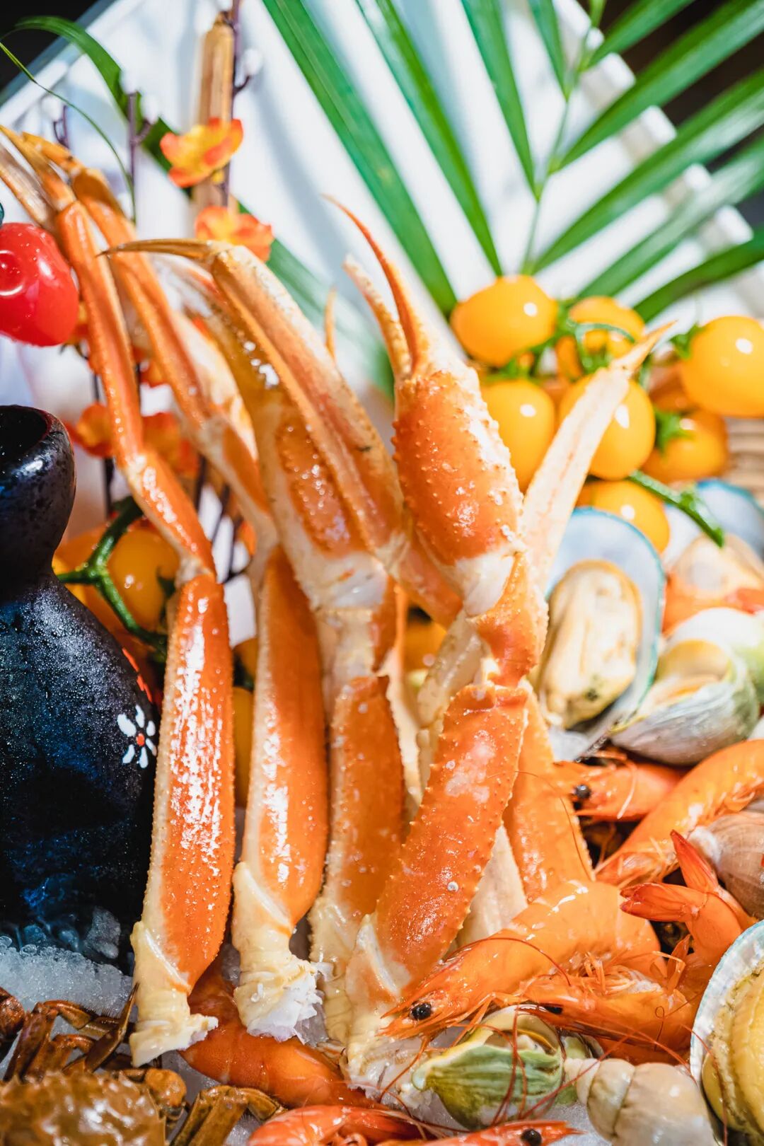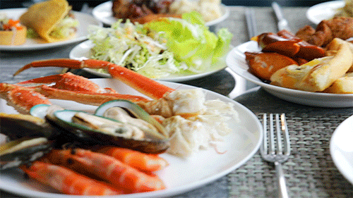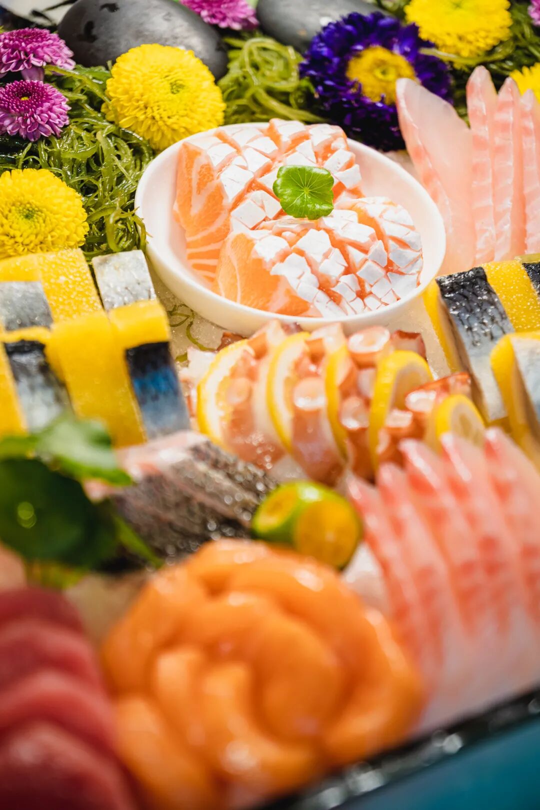 海鲜、刺身、烧烤、扒类、西式冷菜、中式热菜、甜品饮品……通通不缺,即便是中午,也有100+种料理无限量供应!