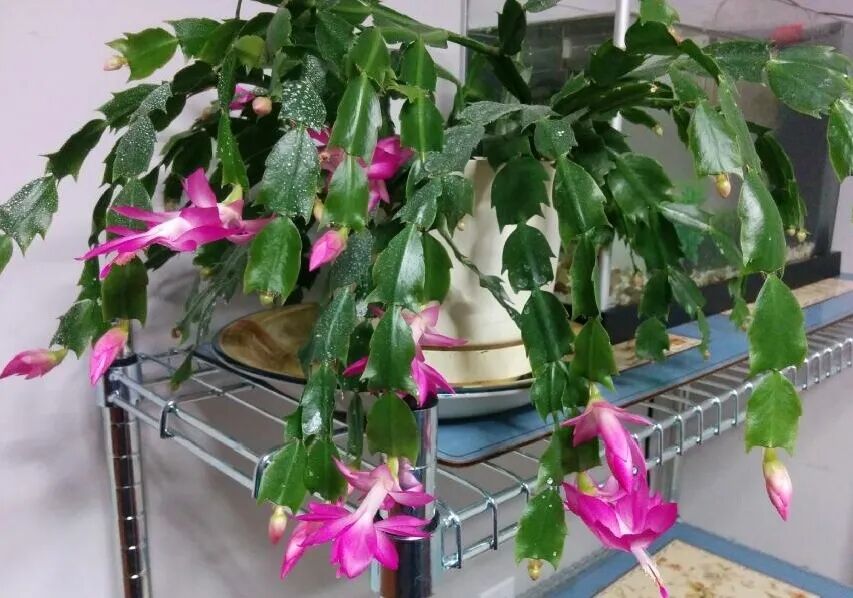 上盆后等蟹爪兰精神了、土壤干燥了就可以继续浇水了,蟹爪兰是短日照植物,每天需要2-4个小时光照,下午光照强烈时要遮阴,服盆1个月后可以施肥,喷磷酸二氢钾或者撒缓释肥都可以,花期大概在11-1月份。