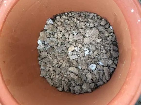 然后找个15-18厘米的盆,高度10-15厘米,底部可以垫1-2层陶粒,然后上营养土,可以用椰糠土、泥炭土混合一些珍珠岩、买的杀菌羊粪肥掺一些,潮土上盆。