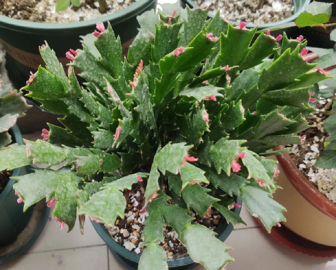 虽然是小花盆养的,换盆时保留了一定间距,很快蟹爪兰还会长的密集(枝条太长的可以掐短),到了明年又可以分盆了,这样循环下去,蟹爪兰也能保持活力。