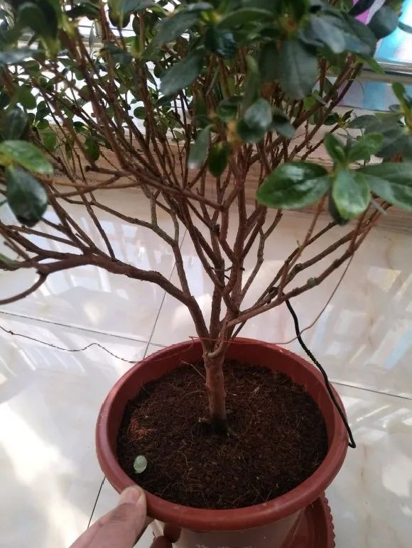 大家要注意,杜鹃换盆后容易掉叶子,这是正常的,换盆过程尽量不要伤到主根,没有特殊情况不要洗根,上盆后保持通风的状态,很快就能恢复。服盆后1-2个月可以施肥,秋冬季节建议用酸性营养液或奥绿缓释肥。