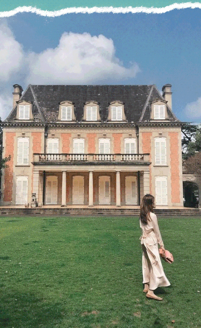小洋楼、大草坪、欧式小喷泉和参天松,出片率都非常高。