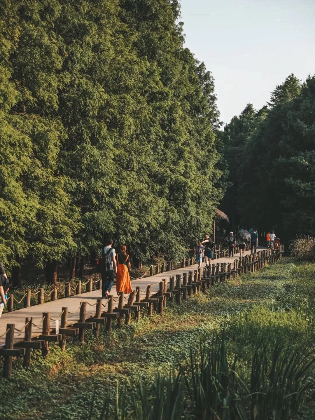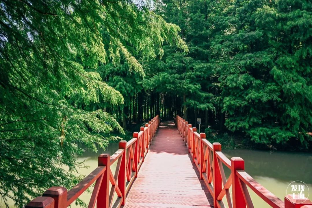绝佳拍照地:水杉林荫小道、红色廊桥