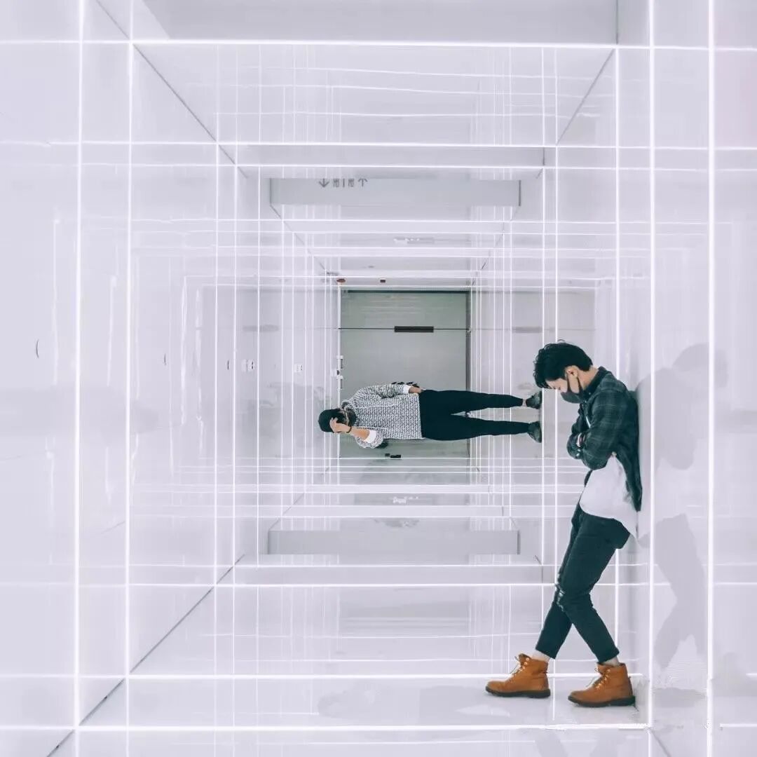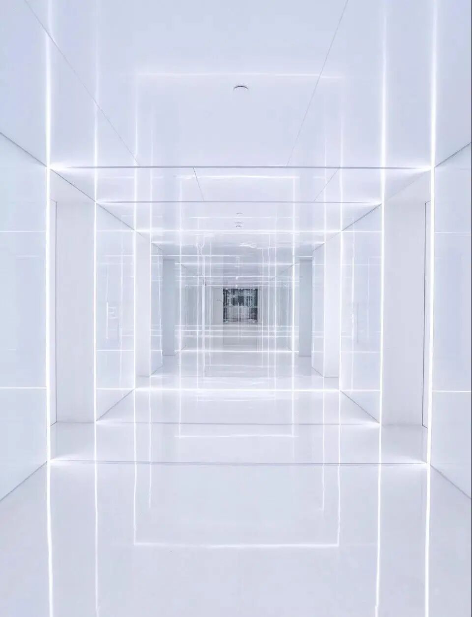 大楼电梯通道必拍!纯白通道一层层的光带,营造出高级的时尚感,新天地精致白领的气质就有了!