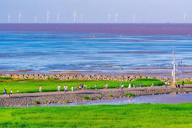 拍照取景点:司南鱼(中间通道)、海坝长堤、海边滩涂、东海大桥大风车