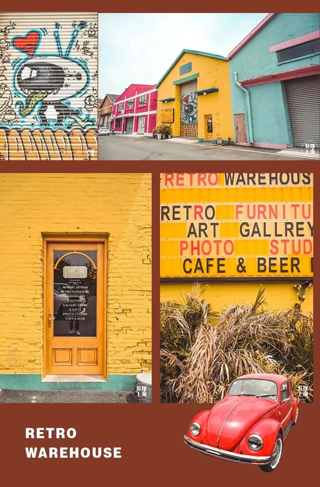 被刷上浓烈颜色的仓库墙面、大停车场摆满的复古车,里里外外充满了好莱坞片场的气质,像是穿越到了50、60年代的美剧中!