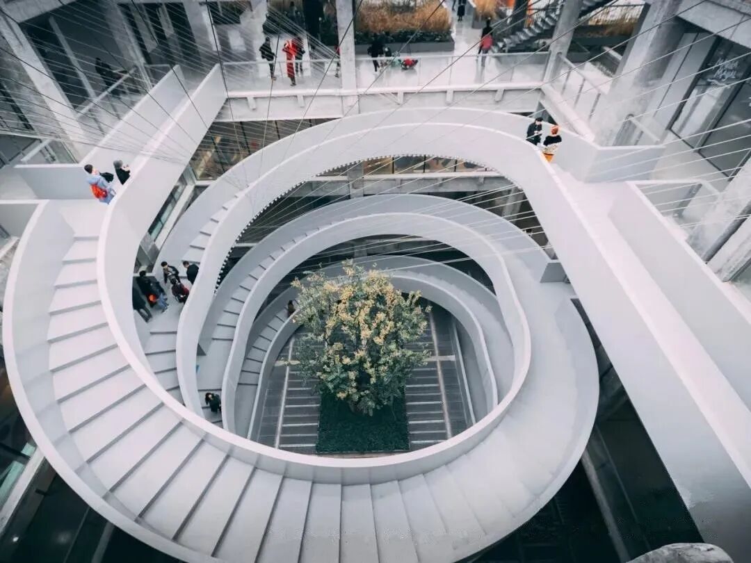 复兴SOHO可以说是网红办公楼的代表,负2层的白色+银色镜面旋转楼梯,走在上面感觉整个人气场都提高了10个level!
