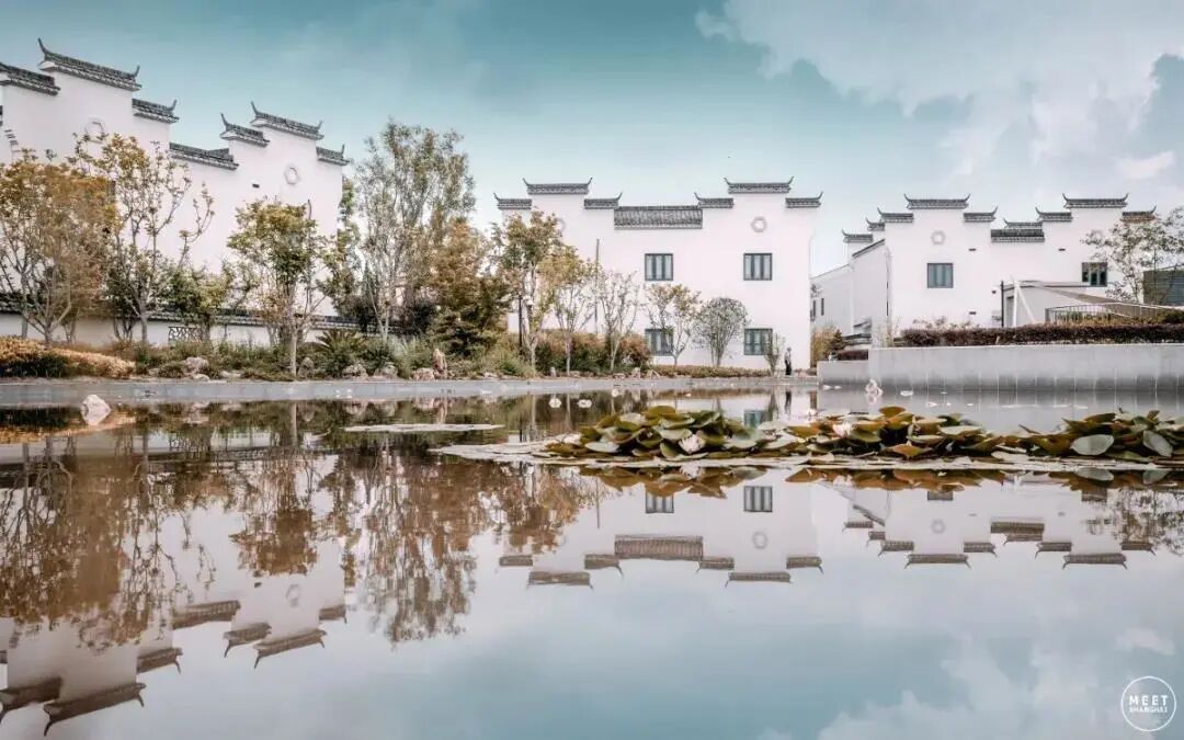 中新泾公园被称为魔都“小宏村”,一整排粉墙黛瓦的徽派建筑临水而筑,池中还有睡莲簇簇。