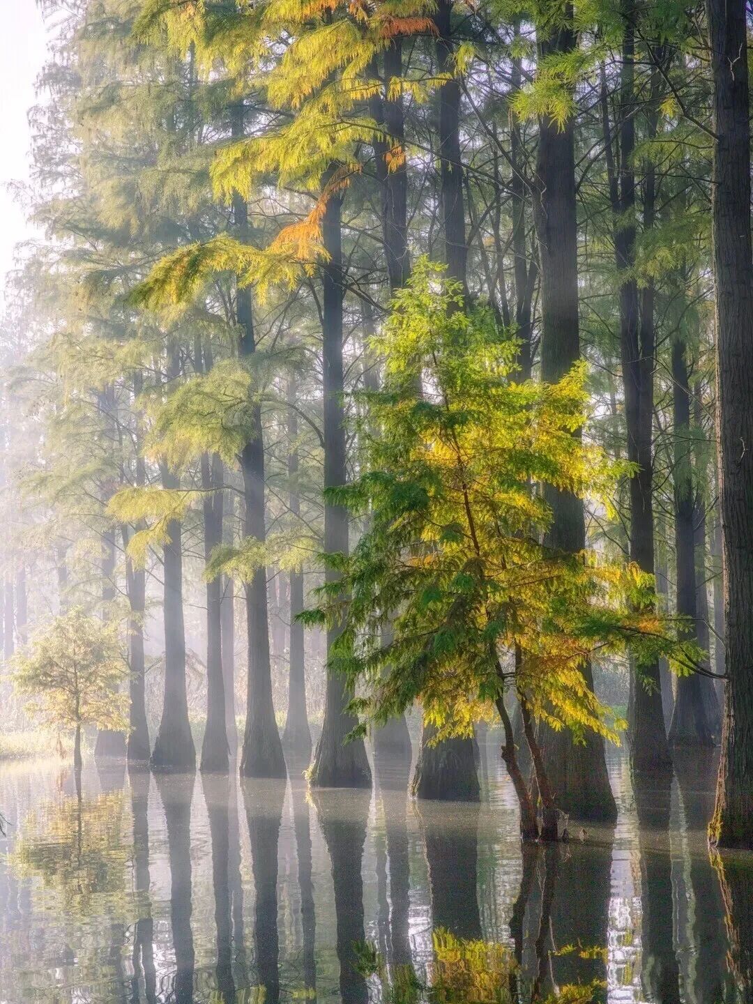 夏日小清新、秋冬复古风,水杉倒映在水面,雨天又带有一点忧郁的气质,堪称魔都绝美!