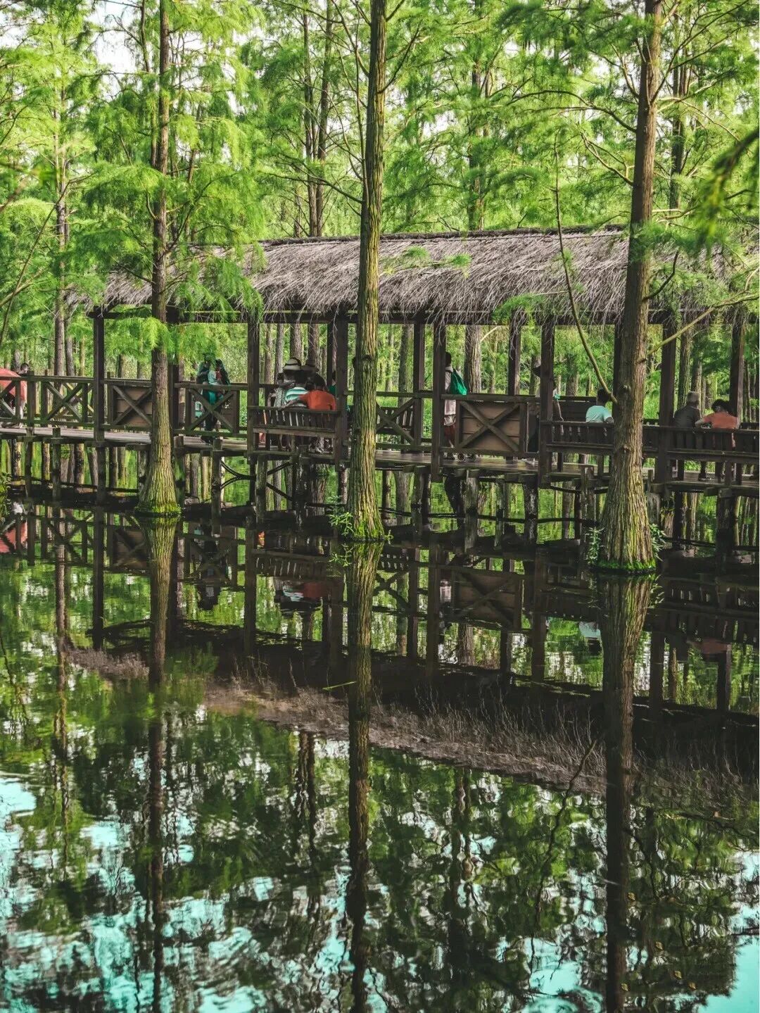 当然,这里的颜值担当非生态保育区的水上水杉林莫属。