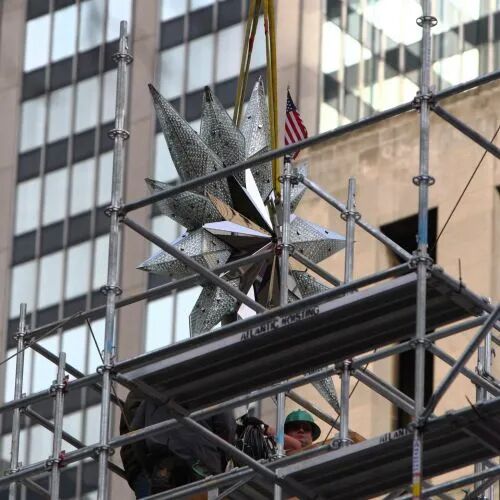 还有纽约洛克菲勒中心每年年底都会出现的那棵有名的圣诞树,树顶上挂着用2.5万颗施华洛世奇水晶做的巨大星星。