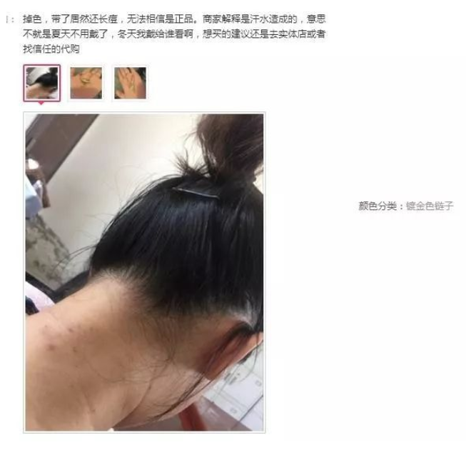 还有网友晒出过链子掉色蹭了一脖子的照片。