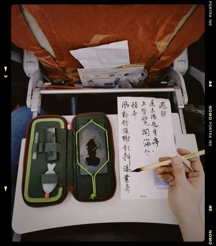 现在的谢受之,迷上了书法。2021年,他专门去日本看了颜真卿的真迹——《祭侄文稿》,当场感动得泪流满面,然后买了可以随身携带的毛笔,一有空闲时间,就在小本上刷刷点点。