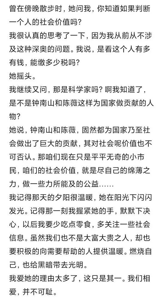 也希望那些思想“保守”的人士,不要再对同性恋群体充满敌意和歧视,“世界上没有任何一桩爱情是错的”,尊重他人的个人选择,多一分理解。