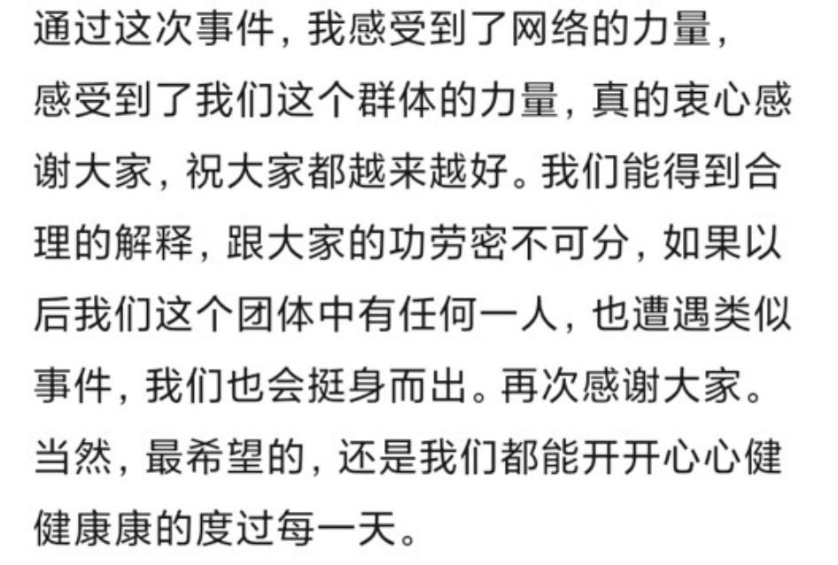 同时,博主也对关注这件事的网友们表示了感谢,她们最终获得了合理的解释,也和大家的努力密不可分。