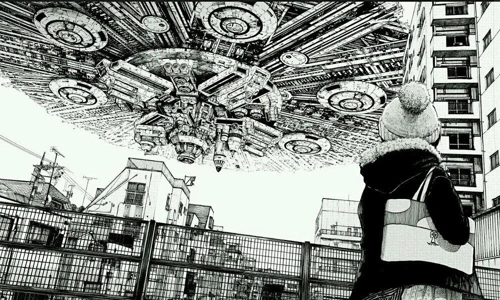 三年前的8月31日,突如其来的“侵略者”,—艘巨大的“母舰”降落至东京上空,世界似乎迎来了终结……在那之后,绝望融入了日常生活,巨大的圆盘飘浮在上空的世界持续到现在。小山门出、中川凰兰两个高中少女,在这个走向终结的世界中,挥洒着自己的青春时代。