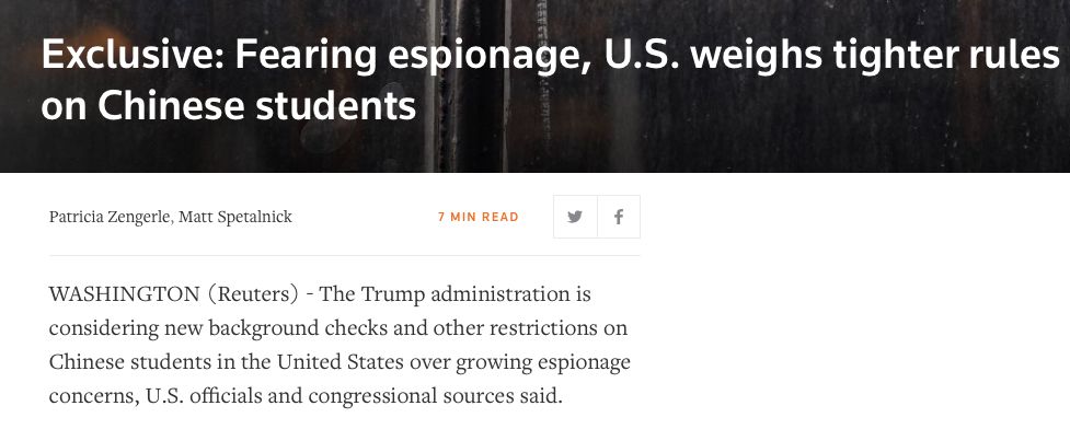 ref:https://www.zhihu.com/column/p/228600955https://www.reuters.com/article/us-usa-china-visas/u-s-blocking-visas-of-some-chinese-graduate-students-and-researchers-dhs-idUSKBN2602OO
