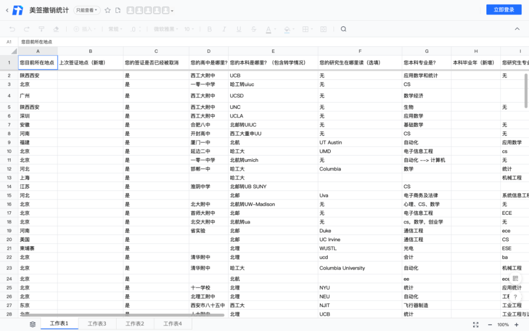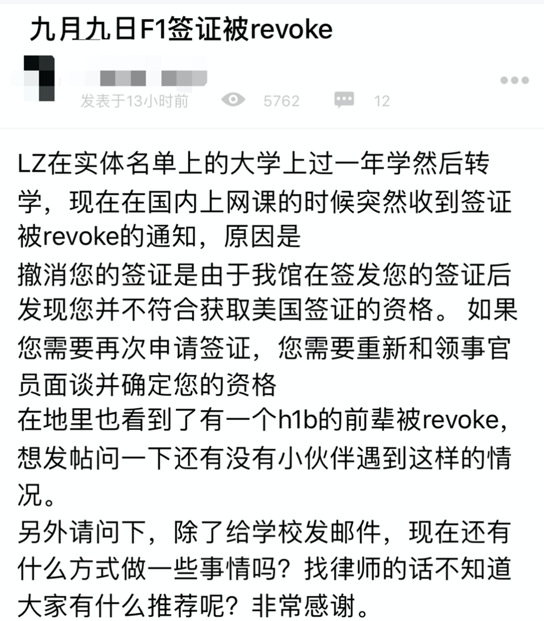而根据美国大使馆的回复,被突然取消签证这事看来是真的。于是小编来到了美国留学生较为集中的一亩三分地论坛,发现论坛里也有不少突然被取消签证的小伙伴。不少突然“被通知”取消签证的留学生现身说法,目前现在网络上有一份在线文档上面记载了被取消签证的同学的详细情况。