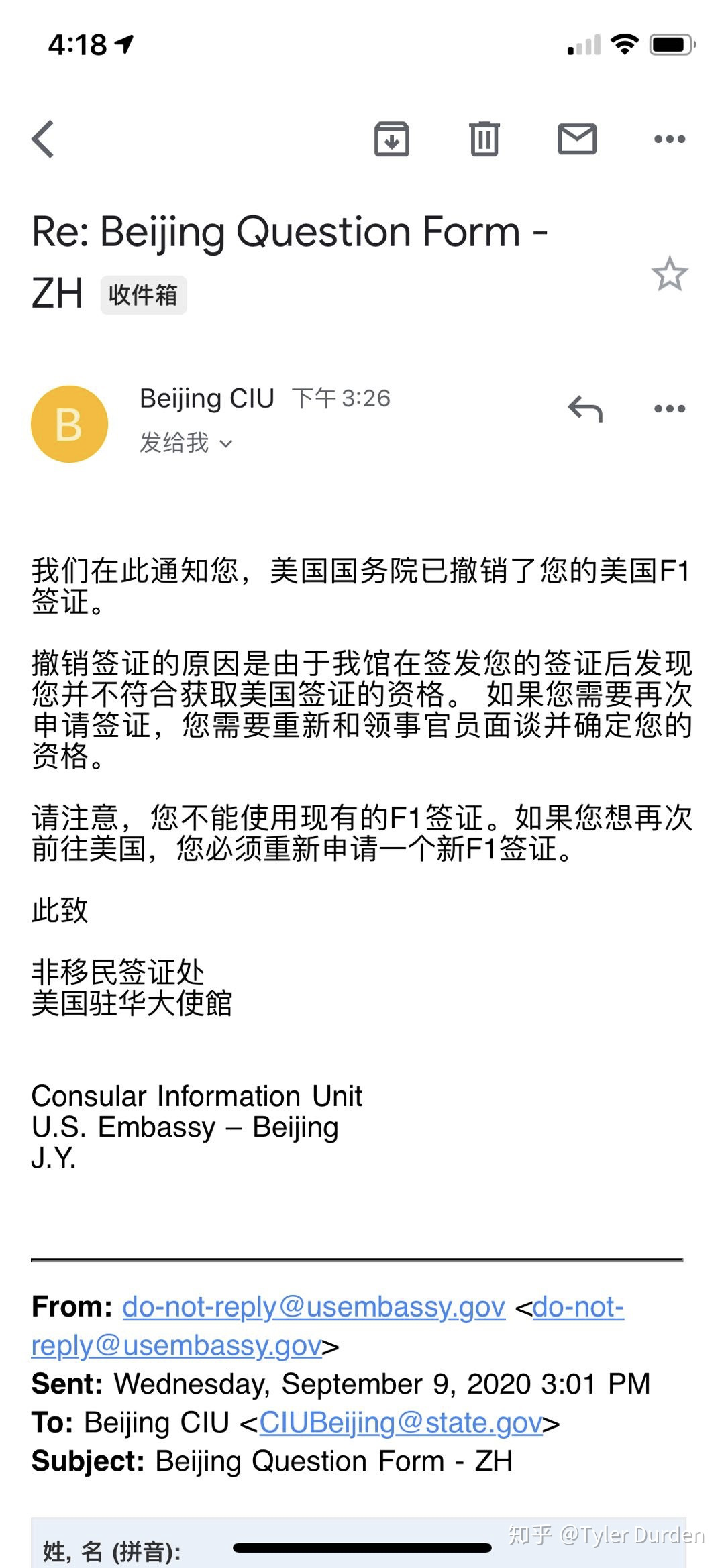 根据邮件:美国国务院认为持证人并不具备合法的资格。如果需要再次进入美国,需要去当地的美国大使馆重新申请新的美国签证。有些收到邮件的同学非常心急,又很担心可能是诈骗邮件,于是向大使馆求证。