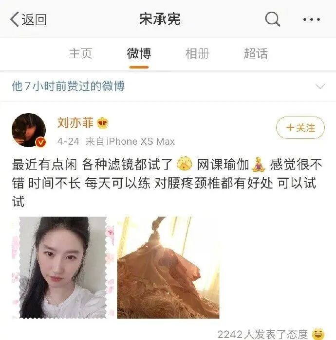 今年五月,许久未在中国社交平台更新动态的宋承宪,凌晨点赞刘亦菲自拍,一时间引发了网友的复合猜测,工作室人员之后还辟谣称“手滑”。此时的宋承宪也正处于新剧宣传期,一波操作不禁让人怀疑宋借着女方热度炒作宣传。