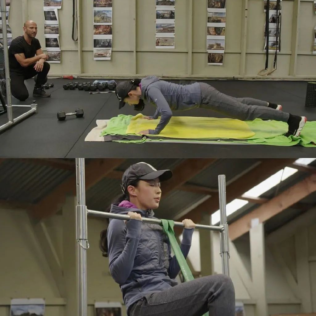 她坚持健身,用运动让身体充满活力、保持优雅体态和美好线条。别看长相柔柔弱弱,她也是有肱二头肌的女“汉”子。