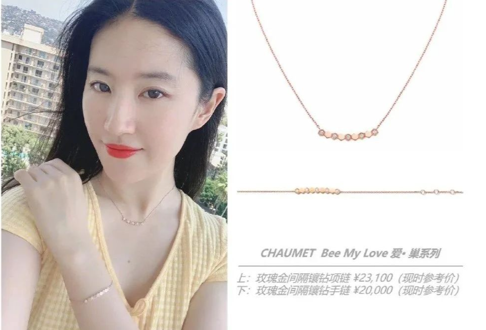 前段时间茜茜过生日,CHAUMET还特意献上Bee My Love系列的项链和手环表示祝福。
