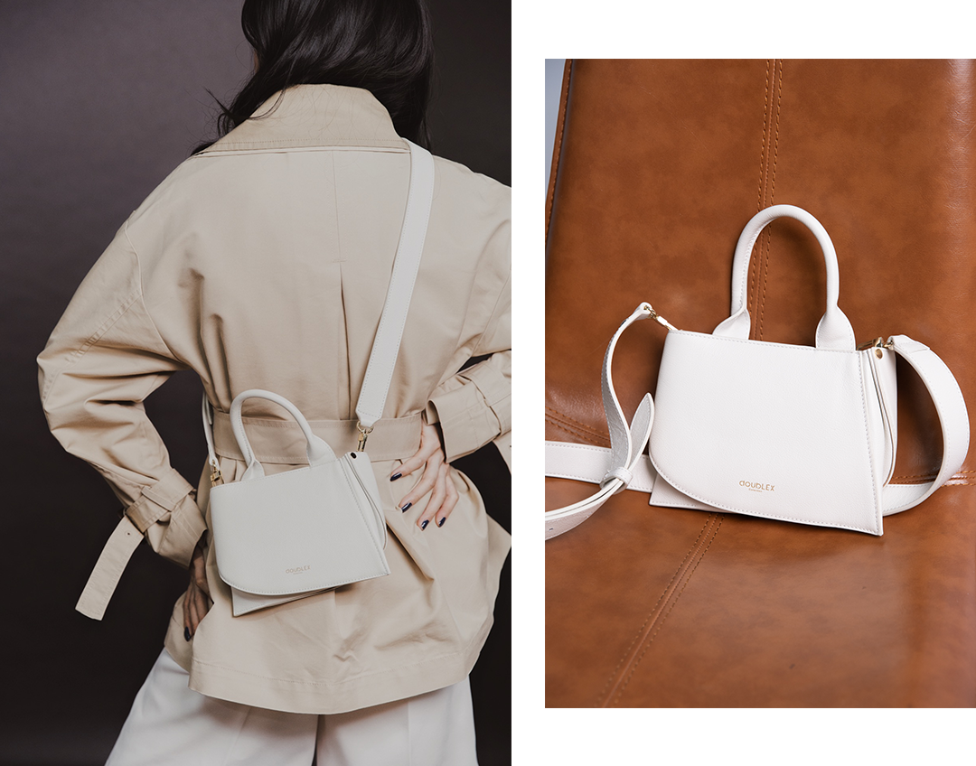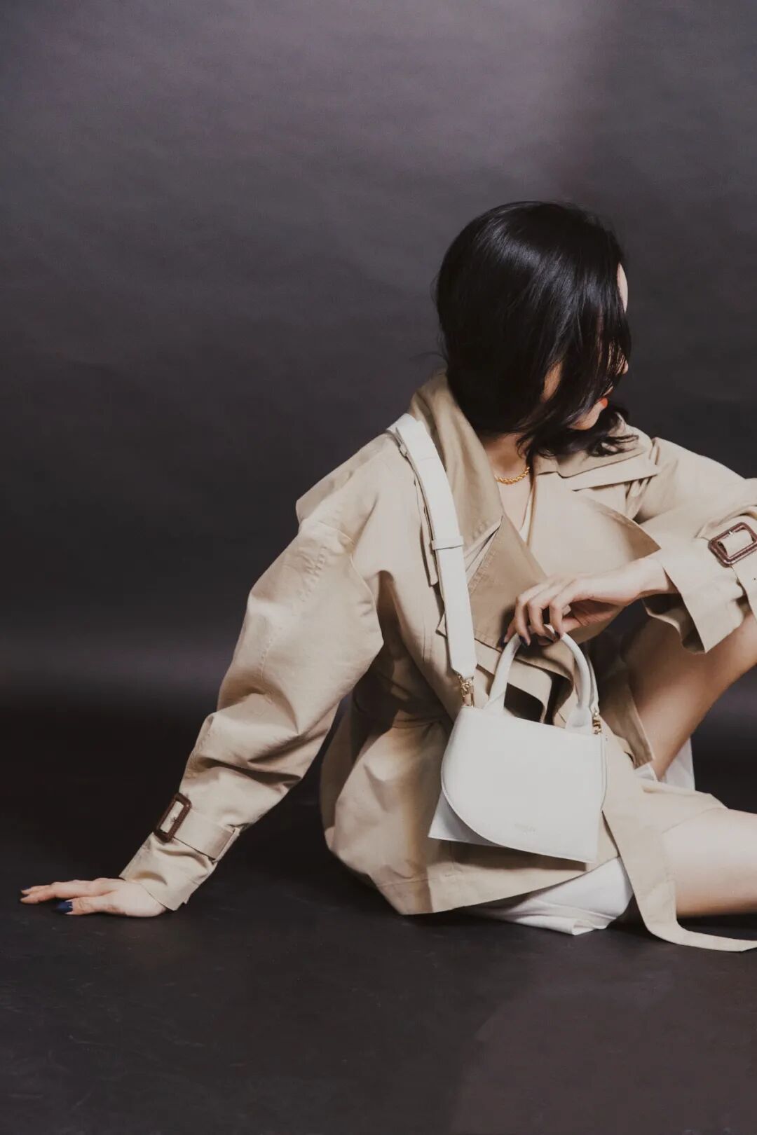 要是怕hold不住长款风衣的话,今年短款的风衣也很流行~相比那些霸气、洒脱的长款风衣,短款风衣上身会显得干练、利落▼我选择了这款白色的小挎包,干净利落的造型,底部的燕尾流线设计,也很是有特点~我觉得这款包的粗肩带算是一个灵魂所在,于是我特意将它斜挎着背,果然非常衬托百慕大短裤和短风衣的Boyish气质▼除了斜跨,还可以单肩背,把肩带收起来,也可以变成一个小巧的手拎包▼